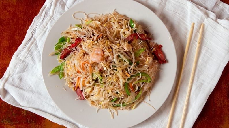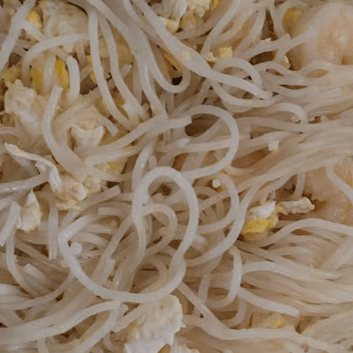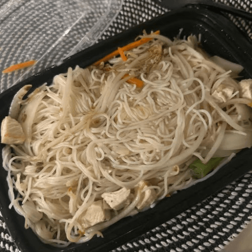 瓜菜米粉. Thin rice noodles stir-fried with carrot, onion, green & red peppers, and bean sprouts