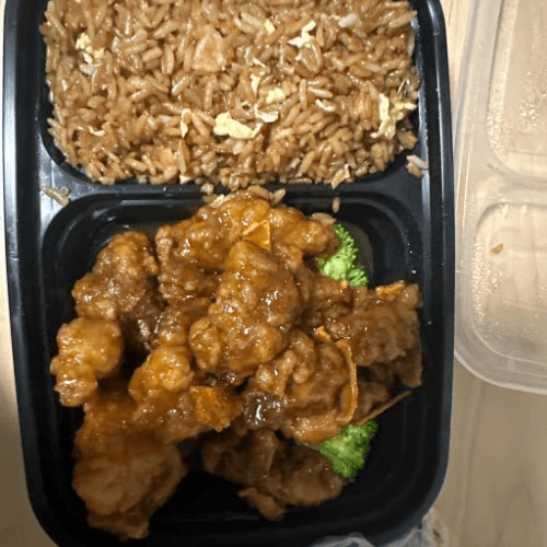 本楼炒饭. Shrimp, chicken, beef and roast pork