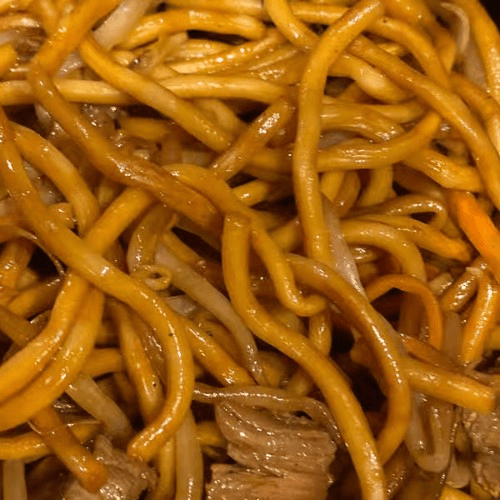 牛炒面. Sauteed mix vegetable and beef with light white sauce, with crunchy noodle chips on side